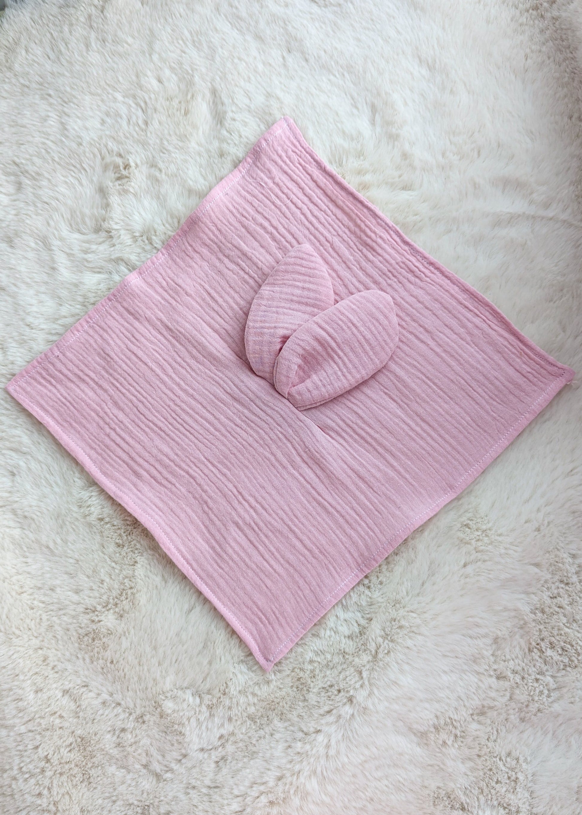- Forme : doudou plat avec oreilles de lapin